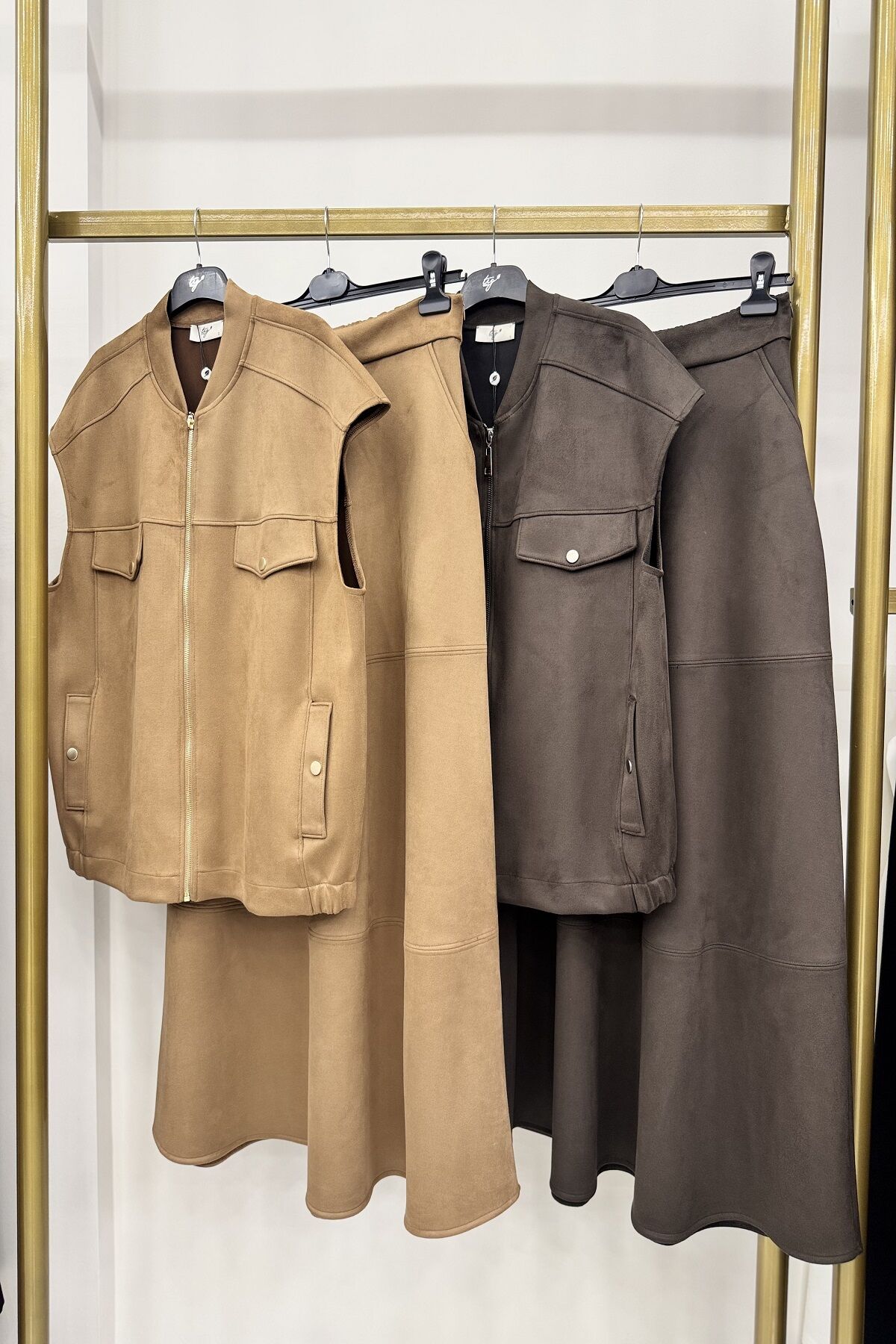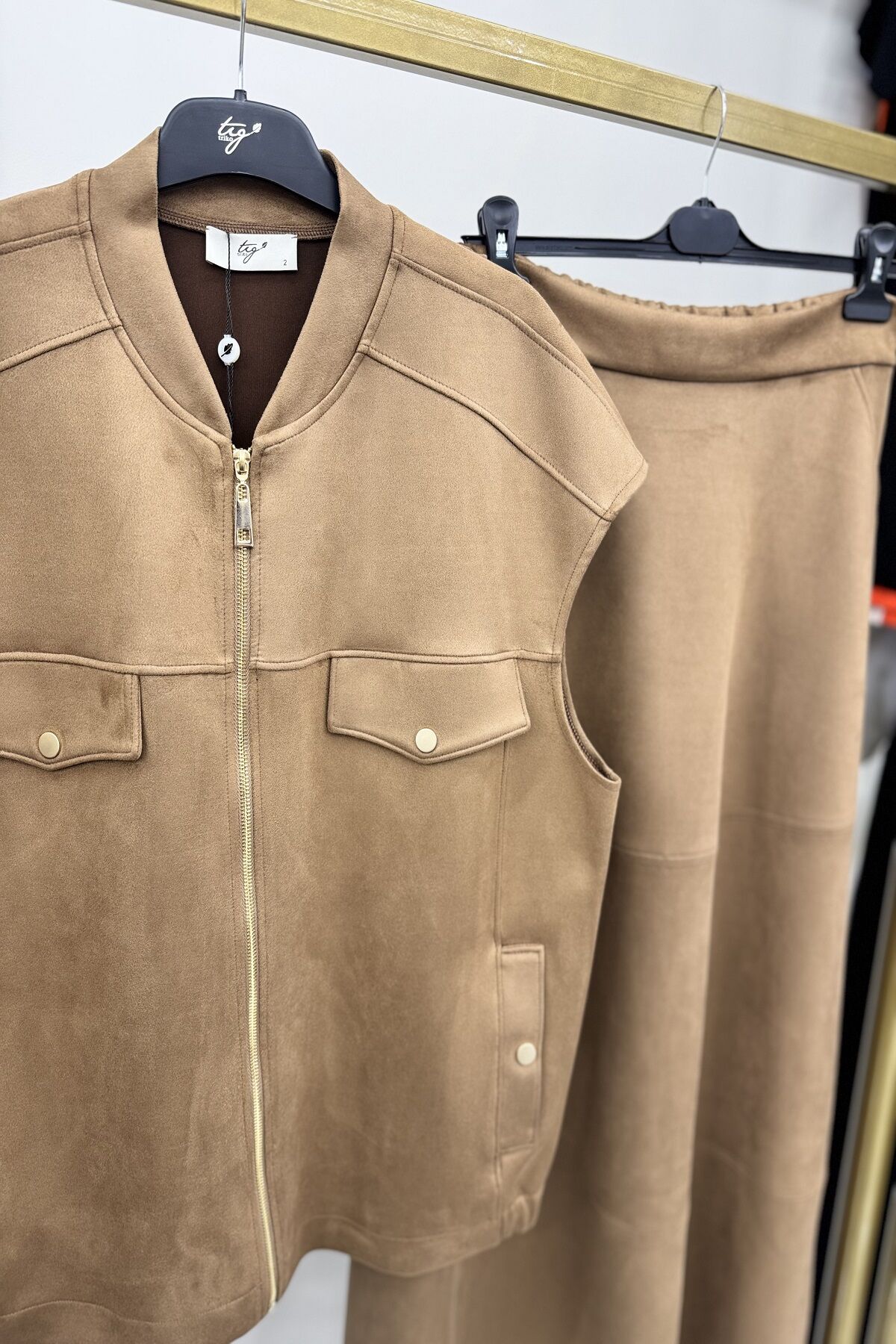 TIĞTRİKO YENİ SEZON ETEKLİ TAKIM KALIBI GENİŞ ÜRÜN KUMAŞI : SÜET ÜRÜN ÜST BOYU : 68 CM ÜRÜN ETEK BOYU : 101 CM